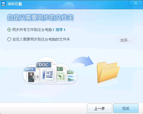 設置后,系統會讓您設置需要同步所有文件或自定義文件,我們一般選同步所有文件到這臺電腦。