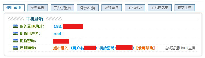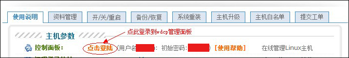 [原創(chuàng)]VPS/云主機用WDCP建站流程及卸載wd以下內(nèi)容僅適用于我司的linux的VPS和云主機。 推薦按以下流程使用WDCP面版進(jìn)行管理,若您需要用SSH(http://m.oote.cn/faq/448.html )登錄服務(wù)器,請注意登錄端口是22000,不是默認(rèn)的22端口,初始的用戶名和密碼詳見控制面板。 Mysql的root密碼 跟控制面板顯示的初始密碼相同,一般不建議單獨修改Mysql的root密碼。 首先請將您的域名解析到您的IP地址,并且在我司提交白名單(白名單每小時自動刷新一次,刷新后生效)。待白名單生效后用您的域名加8080端口來登陸WDCP管理系統(tǒng)。如:http://www.abc.com:8080。也可以從我司的獨立IP管理面板來直接登錄,如圖: