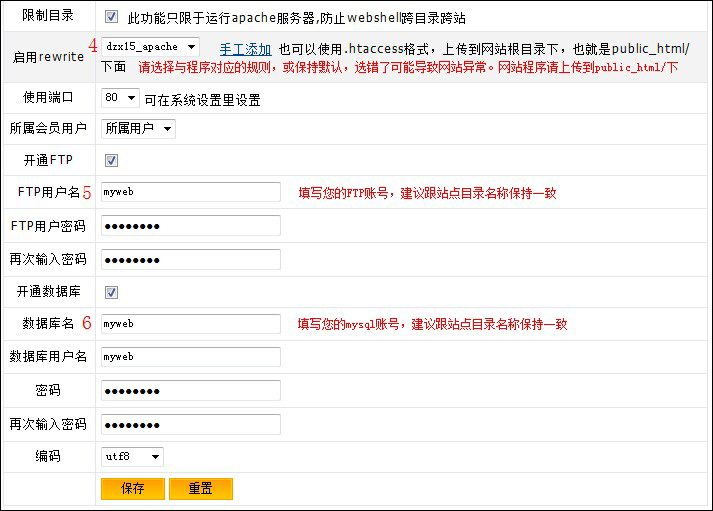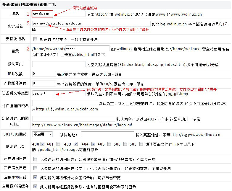 共享IP的登錄位置如圖: 登錄時用戶名填寫默認(rèn)的管理員用戶名root,密碼為“資料管理”中的初始密碼。如圖: 登陸后,左邊是管理欄目,右邊就是顯示的系統(tǒng)狀態(tài),可以很清楚的看到當(dāng)前服務(wù)器的系統(tǒng)各項信息,如圖: 以下是建站流程,一共分為六個步驟,圖中用阿拉伯?dāng)?shù)字標(biāo)注了,如圖: 1、填寫您要訪問的頂級域名。 2、綁定除頂級域名以外的其他域名。 3、填寫站點目錄,建議和后面要填寫的FTP賬號保持一致。 網(wǎng)站程序請上傳至站點目錄下的piblic_html文件夾中,若需使用錯誤定向頁,請勾選,如404錯誤的定向頁。若需開啟訪問日志和錯誤日志,請勾選,開啟后將占用服務(wù)器磁盤空間,需要定期清理。 4、偽靜態(tài)設(shè)置,請保持默認(rèn)“無”,或者選擇對應(yīng)的偽靜態(tài)配置,若自己不清楚是哪個版本,請選擇“無”。 5、填寫FTP賬號和密碼,建議跟站點目錄名稱一致,方便管理 6、填寫mysql數(shù)據(jù)庫名和密碼,建議數(shù)據(jù)庫名、數(shù)據(jù)庫用戶名和站點目錄名稱一致,方便管理。 至此,新建網(wǎng)站的流程就完成了。注意:FTP上傳文件時要把網(wǎng)頁文件傳到:public_html 這個目錄里面去。 如果你想要純凈版的linux,然后自己安裝php,mysql,apache等軟件, 卸載wdcp控制面板的方式如下:用 ssh遠(yuǎn)程登錄服務(wù)器, 特別說明:mysql的root用戶密碼默認(rèn)為“獨立IP主機管理”中服務(wù)器登錄的初始密碼,若要修改,請直接在wdcp管理系統(tǒng) “mysql管理”——“修改root用戶密碼”中修改,切勿登錄phpmyadmin直接修改root密碼。 特別提醒:初學(xué)者建議不要修改“服務(wù)設(shè)置”、“系統(tǒng)管理”、“安全管理”中的項目,以免造成系統(tǒng)或網(wǎng)站故障。 WDCP系統(tǒng)說明文檔:http://downinfo.myhostadmin.net/wdcp.doc 點擊下載