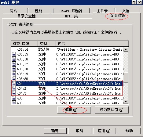 找到HTTP錯(cuò)誤,下邊對(duì)應(yīng)的404、404:2、404:3,分別點(diǎn)擊“編輯”