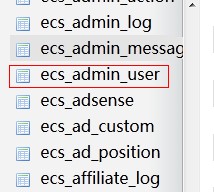 ECShop網(wǎng)店系統(tǒng) V2.7.3 管理員忘記密碼修改教程進(jìn)入phpMyAdmin 里面 找到你的網(wǎng)站數(shù)據(jù)庫(kù)名,進(jìn)入找到數(shù)據(jù)表 ecs_admin_user 如圖